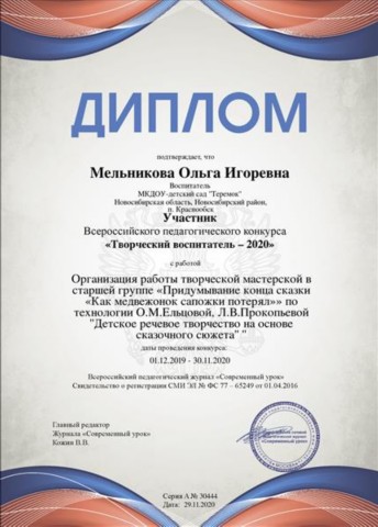 Всероссийский педагогический конкурс "Творческий воспитатель-2020" |