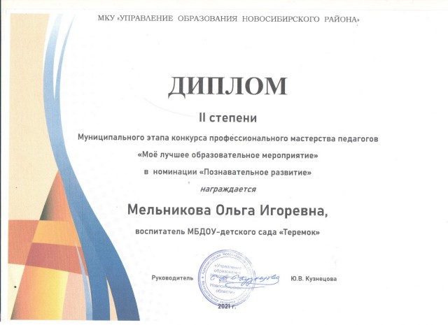 Диплом II степени "Моё лучшее образовательное мероприятие", 2021 г. |