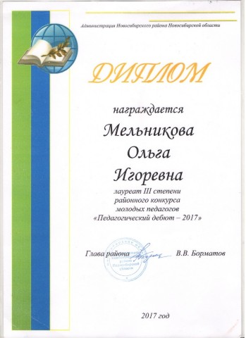 Диплом лауреата III степени "Педагогический дебют-2017" |