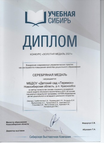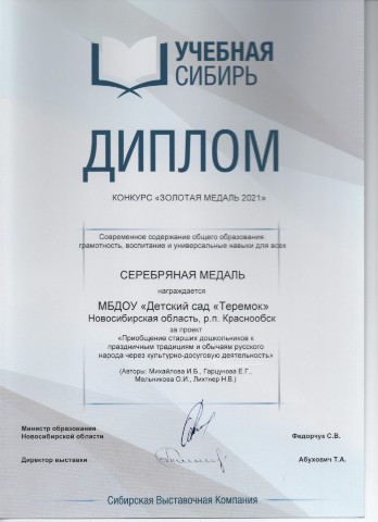Учебная Сибирь диплом "Серебряная медаль", 2021 г. за проект |