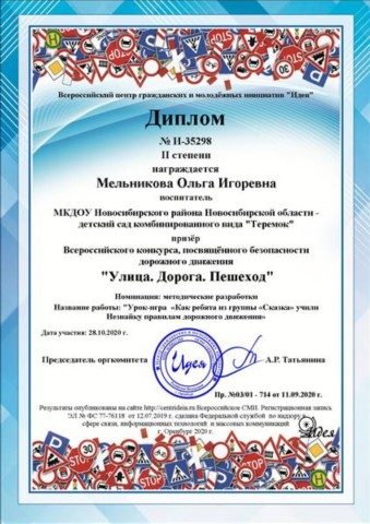Всероссийский конкурс, посвящённый безопасности дорожного движения "Улица. Дорога. Пешеход", 2020г. |